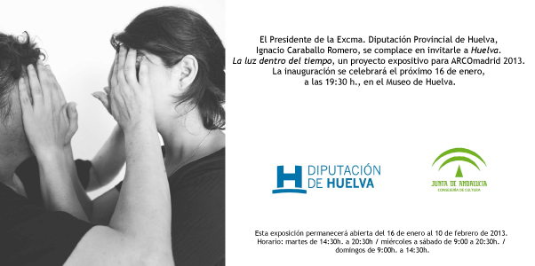 Huelva. La luz dentro del tiempo es un proyecto diseñado por el Área de Cultura de la Diputación de Huelva. Comisariado por Paco Pérez Valencia, glutina a 24 artistas en una innovadora propuesta que ofrece una panorámica de la creación contemporánea del Sur de España, de un entorno altamente creativo, con propuestas tan interesantes como las Becas Daniel Vázquez Díaz o la Sala Siglo XXI, que durante todo el año y desde hace más de veinte años son baluartes de ayuda, producción y exhibición de arte contemporáneo.