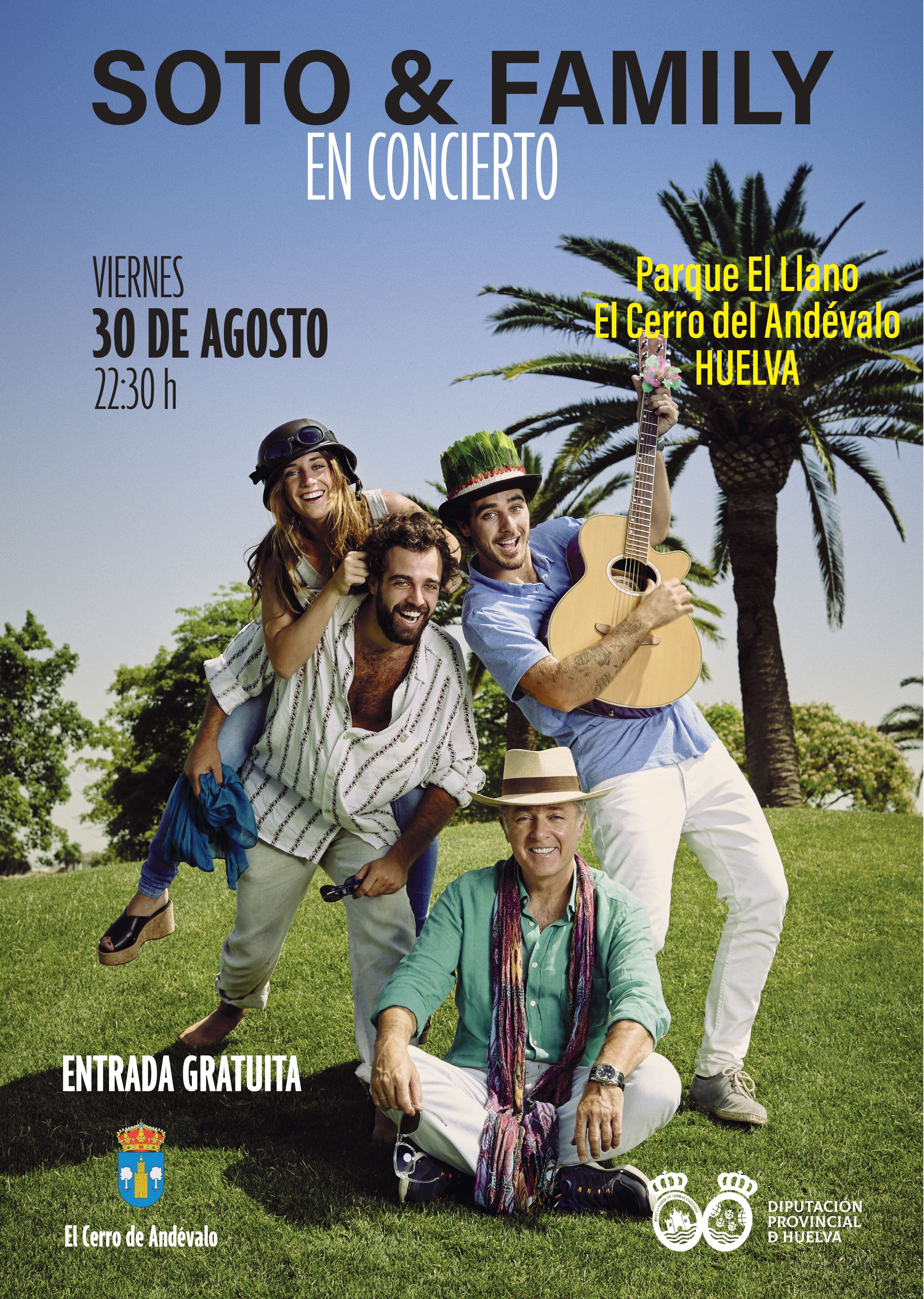 Con el propósito de ampliar la programación de grandes conciertos a la provincia, la Diputación Provincial de Huelva y el Ayuntamiento de El Cerro de Andévalo organizan el 30 de agosto, a las 22:30 horas en el Parque El Llano, un concierto de Soto & Family. La entrada será libre.