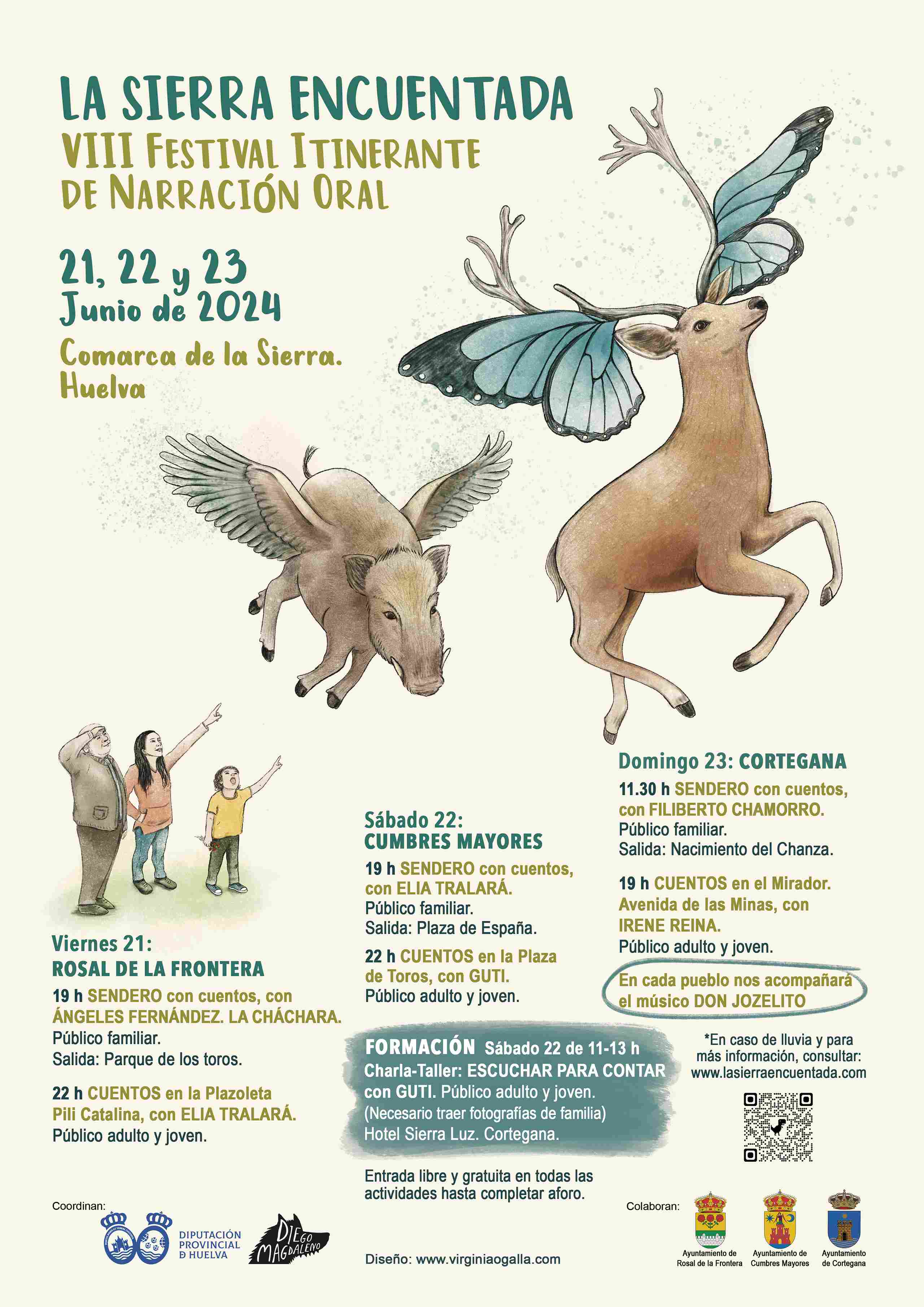 El Area de Cultura de la Diputación Provincial de Huelva lleva 8 años presentando uno de los más singulares festivales de narración oral del ámbito nacional e internacional. Este festival, que se desarrollará en los días 21, 22 y 23 de Junio de 2024, tiene tres características que lo hacen especial.