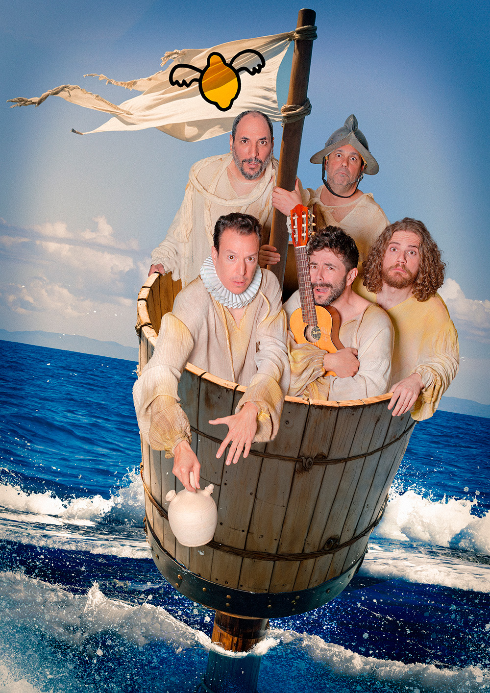 Finales del siglo XVI. Tres náufragos flotan a la deriva en una barca, supervivientes de un naufragio en plena travesía hacia el Nuevo Mundo. Son el capitán Hernán Galán, fray Pío y el marinero Fulano. Entre delirios, discusiones y alucinaciones, estos personajes atraviesan un sinfín de aventuras que combinan sátira, crítica y humor desenfrenado: tiburones flamencos, corsarios ingleses, dioses mesoamericanos y un sinfín de imágenes delirantes poblarán su viaje hasta llegar a una costa misteriosa donde lo real y lo absurdo se confunden. “La Desconquista” es un homenaje burlón y poético a las crónicas de Indias, a la épica imperial y a la mirada hegemónica sobre América. Con textos en verso clásico, música en directo, lenguaje contemporáneo y sello inconfundible de Ron Lalá, la obra entrelaza el legado del Siglo de Oro con una lectura irreverente de la historia. Una comedia musical crítica, vibrante y atrevida que convierte el escenario en una carabela de carcajadas y reflexión. Ron Lalá propone una “desconquista” teatral en toda regla: del relato oficial, del género, del poder y de los tópicos. Cinco actores-músicos y un océano de ironía al servicio de un espectáculo absolutamente laláico.