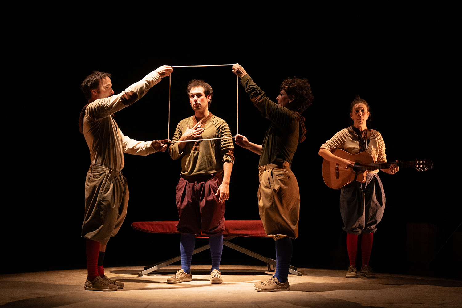 Una troupe de cómicos irrumpe en la plaza como si fuera un corral de comedias itinerante. Con música en directo, acrobacias, humor y muchas dosis de irreverencia, relatan su particular versión del Siglo de Oro español. Reyes que deliran, Góngora y Quevedo en duelo, Cervantes atrapado en su propio ingenio... “La loca historia del Siglo de Oro” es un viaje vertiginoso por los excesos y glorias de nuestra literatura más brillante, contada mediante teatro, la risa y el gesto físico. La Escalera de Tijera y Z Teatro transforman la erudición en juego, la Historia en parodia y el verso en dinamita cómica. Con un lenguaje accesible pero inteligente, esta comedia para todos los públicos rompe la cuarta pared desde el primer minuto. No se trata de aprender, sino de recordar riendo: que el arte también es libertad, que el humor no está reñido con el respeto y que las grandes obras también caben en una plaza bajo las estrellas. “La loca historia del Siglo de Oro” no solo rinde homenaje a los clásicos: celebra el oficio de contar, la magia del teatro de calle y el poder colectivo de una carcajada bien dada. Un brindis lúdico por la cultura compartida.