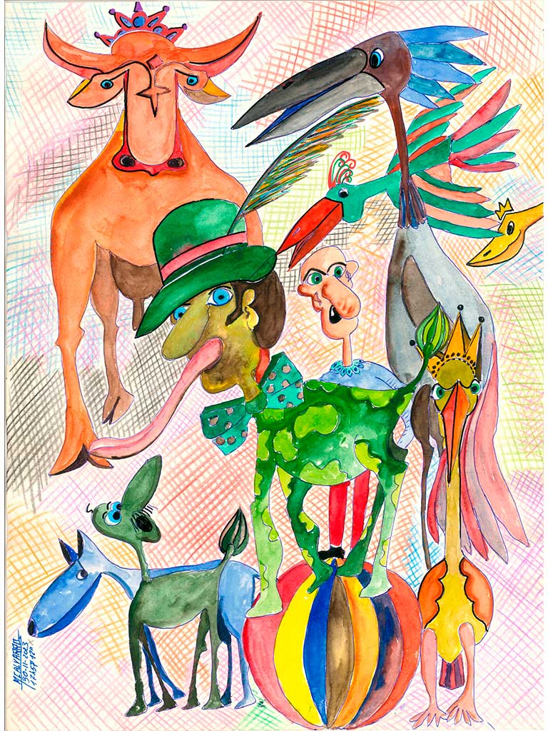 Hablar de Manuel Calvarro es hablar de libertad. De una libertad sin etiquetas, sin justificaciones, sin mapa. Una libertad radical, que se niega a obedecer las expectativas. Como si cada obra fuera una prolongación directa de su forma de ser: curiosa, generosa, irreverente. Su obra no se acomoda a las vitrinas ni a las líneas rectas del discurso académico. Su apuesta es el trazo suelto, la madera sin pulir, el color sin miedo, la forma que se desborda y se deforma porque sí, porque me gusta.