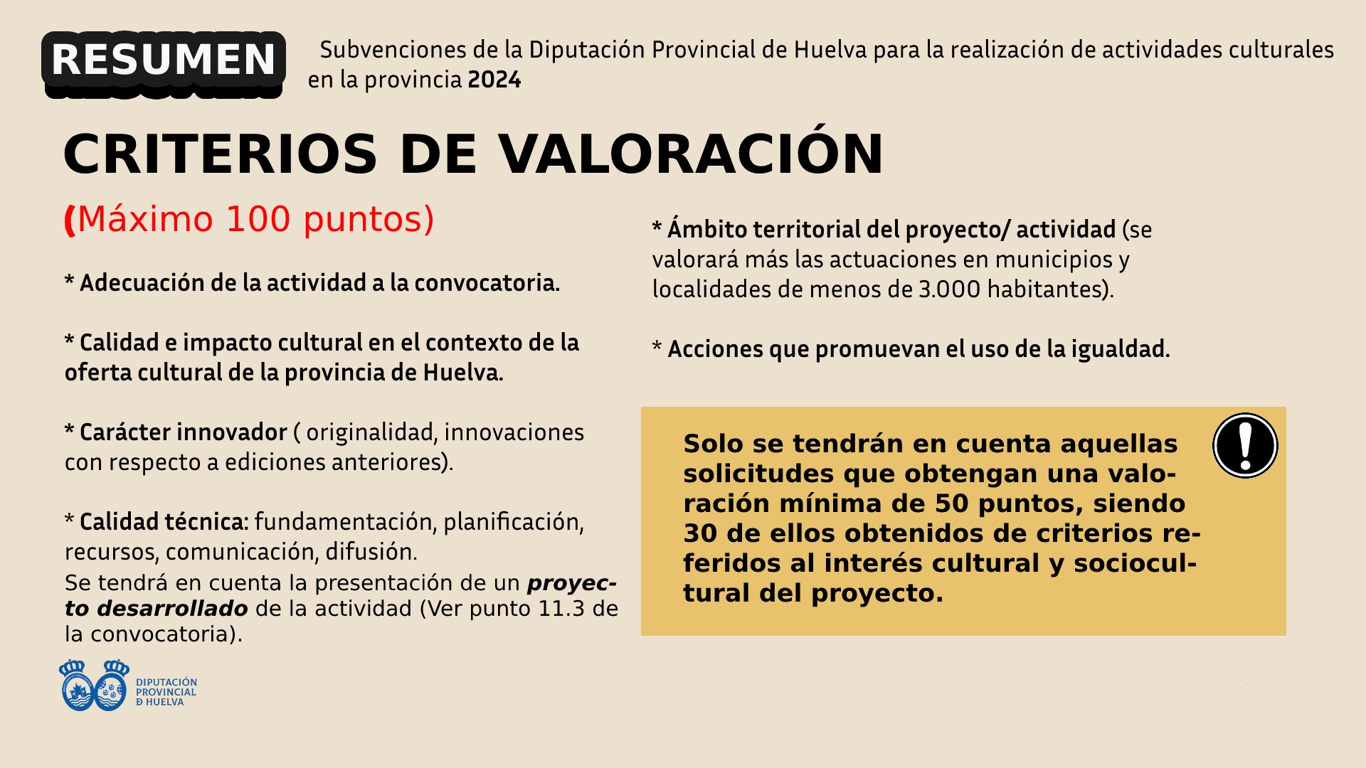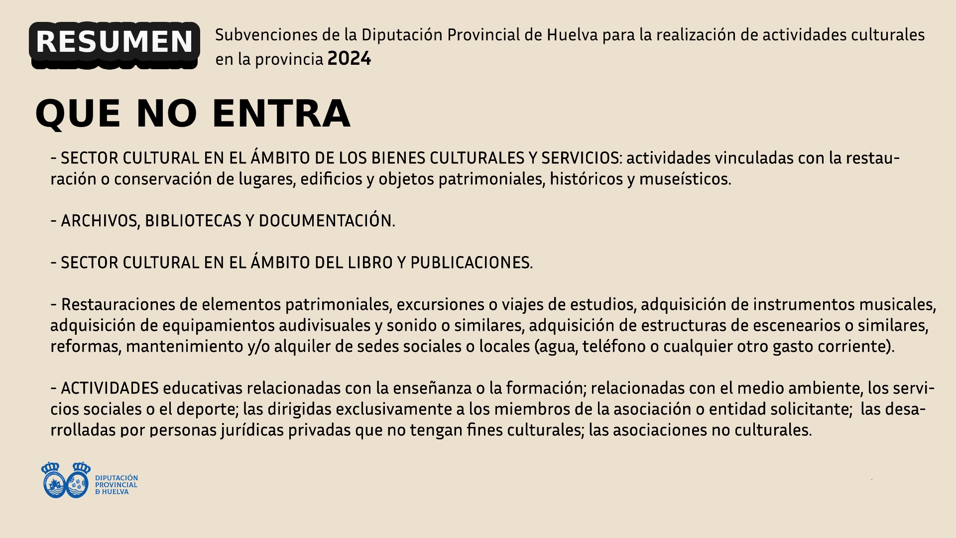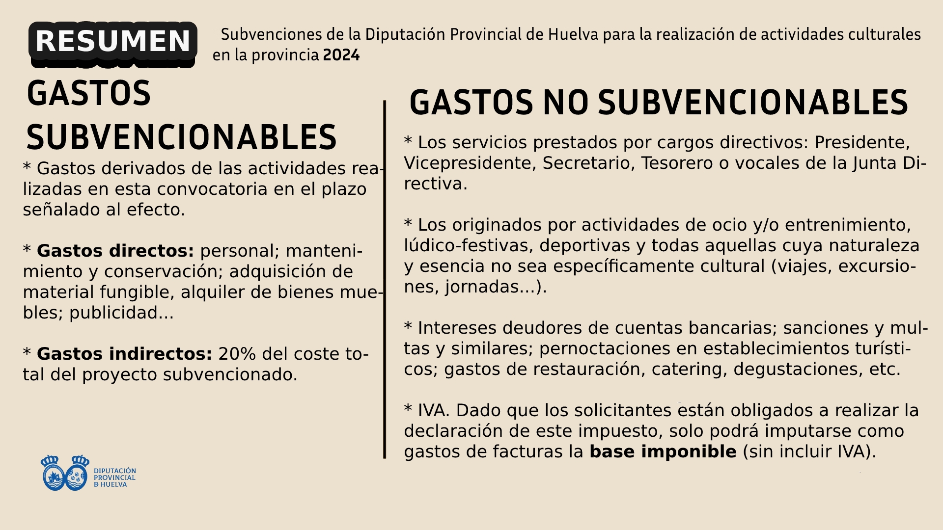 Convocatoria de subvenciones de la Diputación de Huelva para actividades culturales 2024 en la provincia. |