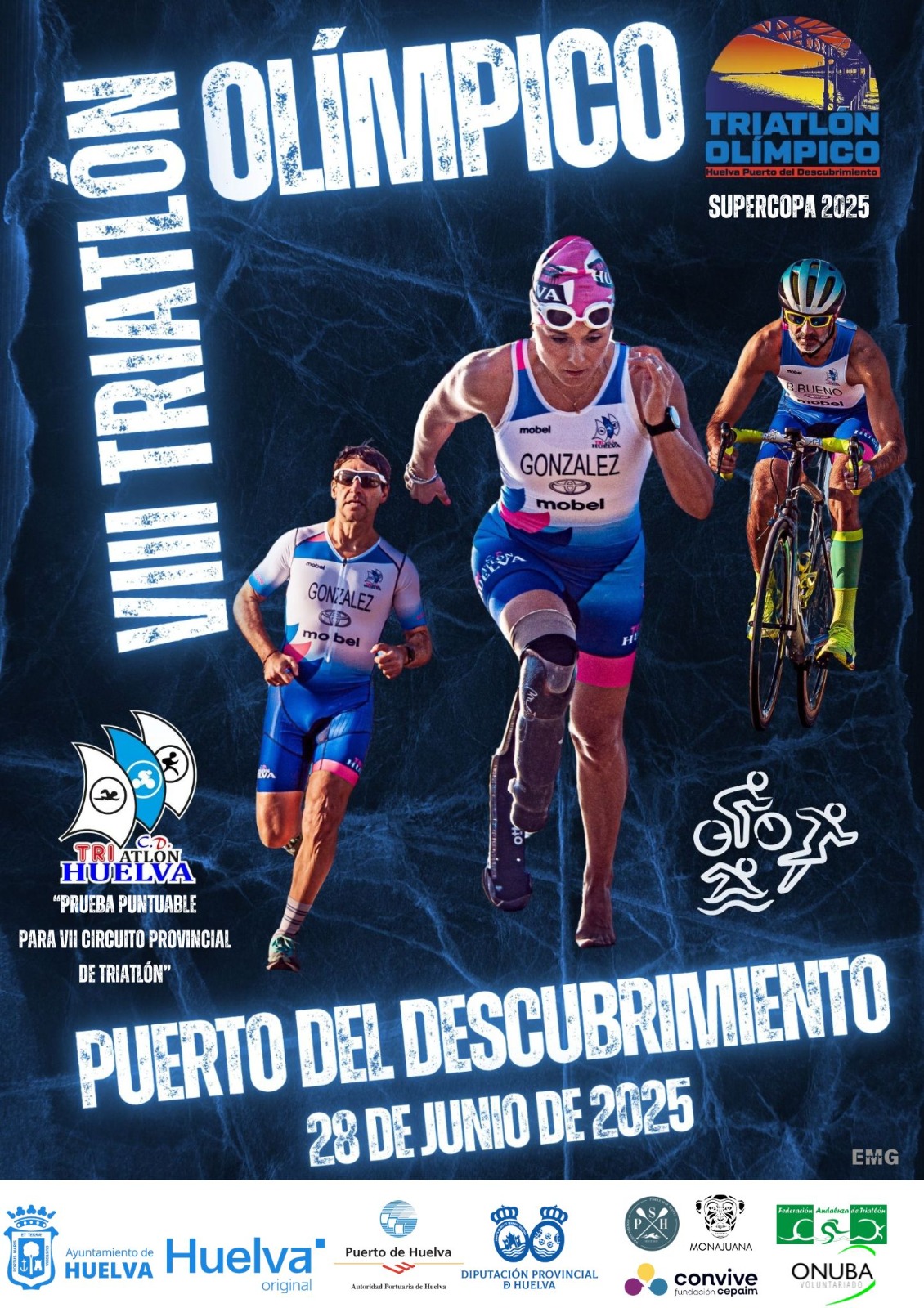 El Club Deportivo Triatlón Huelva organiza junto al Ayuntamiento de Huelva, y la colaboración del Puerto de Huelva, la Diputación de Huelva y la Federación Andaluza de Triatlón, el VIII Triatlón Olímpico "Huelva, Puerto del Descubrimiento", que se celebrará el día 28 de junio a partir de las 18:45h en el Paseo de la Ría de Huelva.