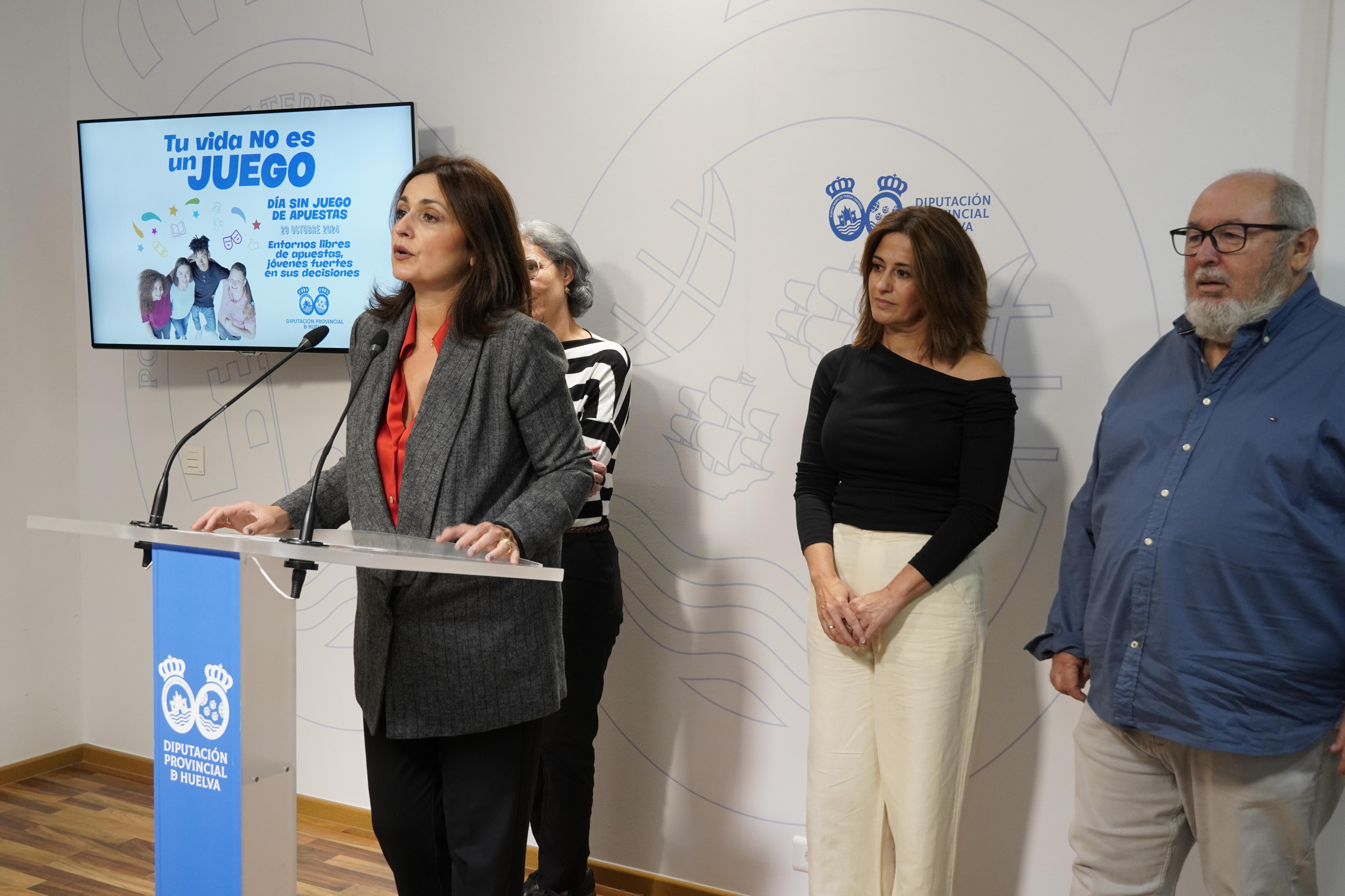 La diputada de Bienestar Social, Carmen Díaz, ha ofrecido esta mañana una rueda de prensa con motivo de la conmemoración del Día Mundial Sin Juegos de Azar que se celebra hoy, 29 de octubre. “Una fecha” -ha indicado la diputada- “con la que se busca sensibilizar a toda la sociedad sobre los riesgos del juego, en colaboración y unión con el equipo de Prevención Social de la institución provincial, por lo que me acompañan la jefa de servicio, Isabel Pérez, y los técnicos Antonio Pelayo y Rocío Martínez, que han elaborado esta propuesta que traemos hoy con el objetivo de concienciar del riesgo que tiene el juego de azar”.