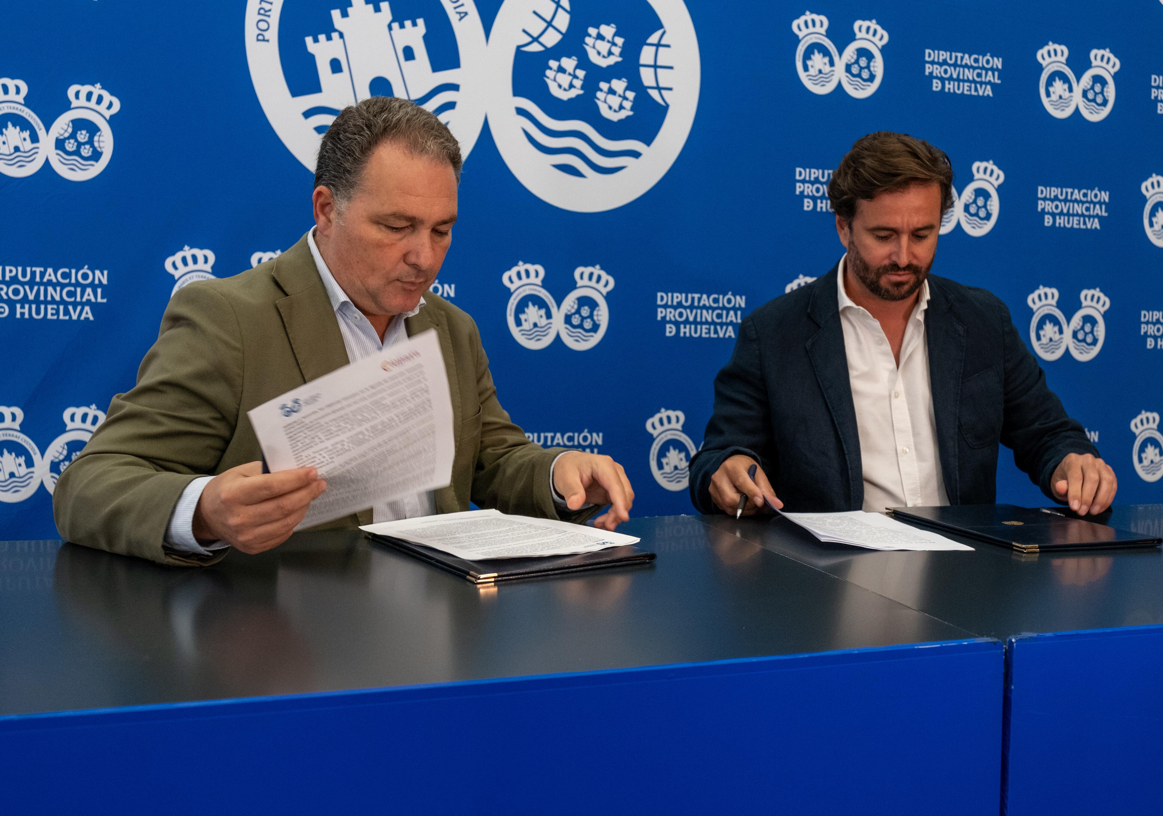 Ambas instituciones firman un convenio que destina 160.000 euros para que el desarrollo llegue a toda la provincia con acciones concretas en el Andévalo, la Sierra y el conjunto del tejido empresarial onubense