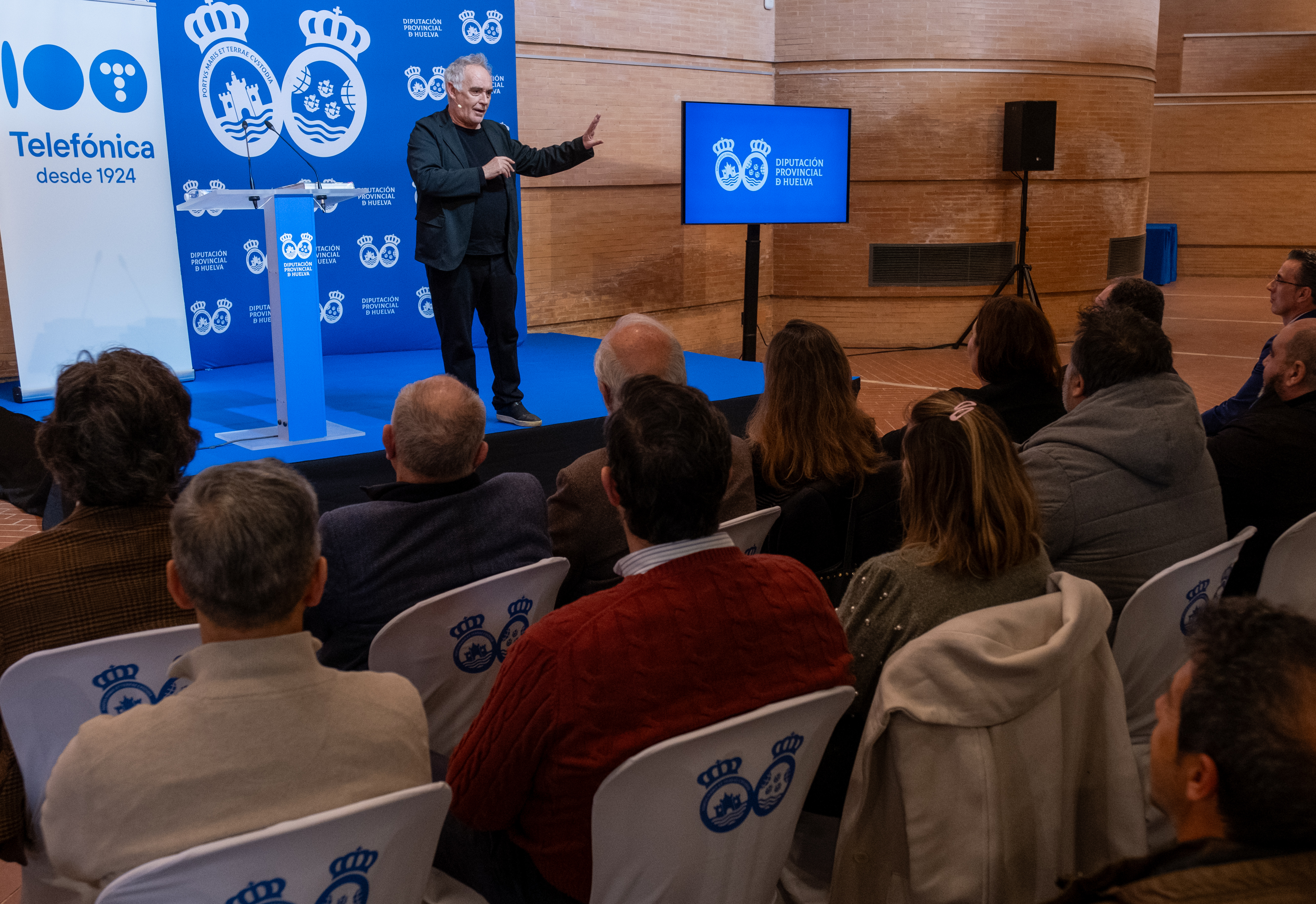 Al comenzar el encuentro, el presidente de la Diputación ha dado la bienvenida a Adriá a “un lugar emblemático” como es La Rábida y ha agradecido a Telefónica “la oportunidad de tener aquí a alguien mundialmente conocido que revolucionó el mundo de la cocina”. Toscano ha animado a los asistentes a aprovechar la experiencia de tener un encuentro directo con Adriá, no solo porque es uno de los mejores cocineros del mundo, sino porque su gestión empresarial ha marcado un antes y un después en la gastronomía como industria. “Tenemos la oportunidad de aprender mucho de él, porque tiene una visión tremenda sobre cómo se puede mejorar, sobre cómo podemos sacar desde Huelva nuestros productos mucho mejor fuera”.