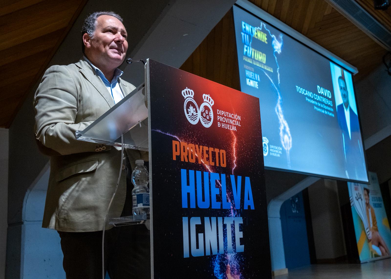 Durante su intervención, Toscano ha puesto el foco en el objetivo del programa y en el momento vital en el que se encuentran los jóvenes participantes. “Hoy iniciamos Huelva Ignite, un programa que impulsa la Diputación de Huelva con un objetivo claro: acercaros al mundo del emprendimiento de una manera práctica, real y cercana”, ha explicado.
