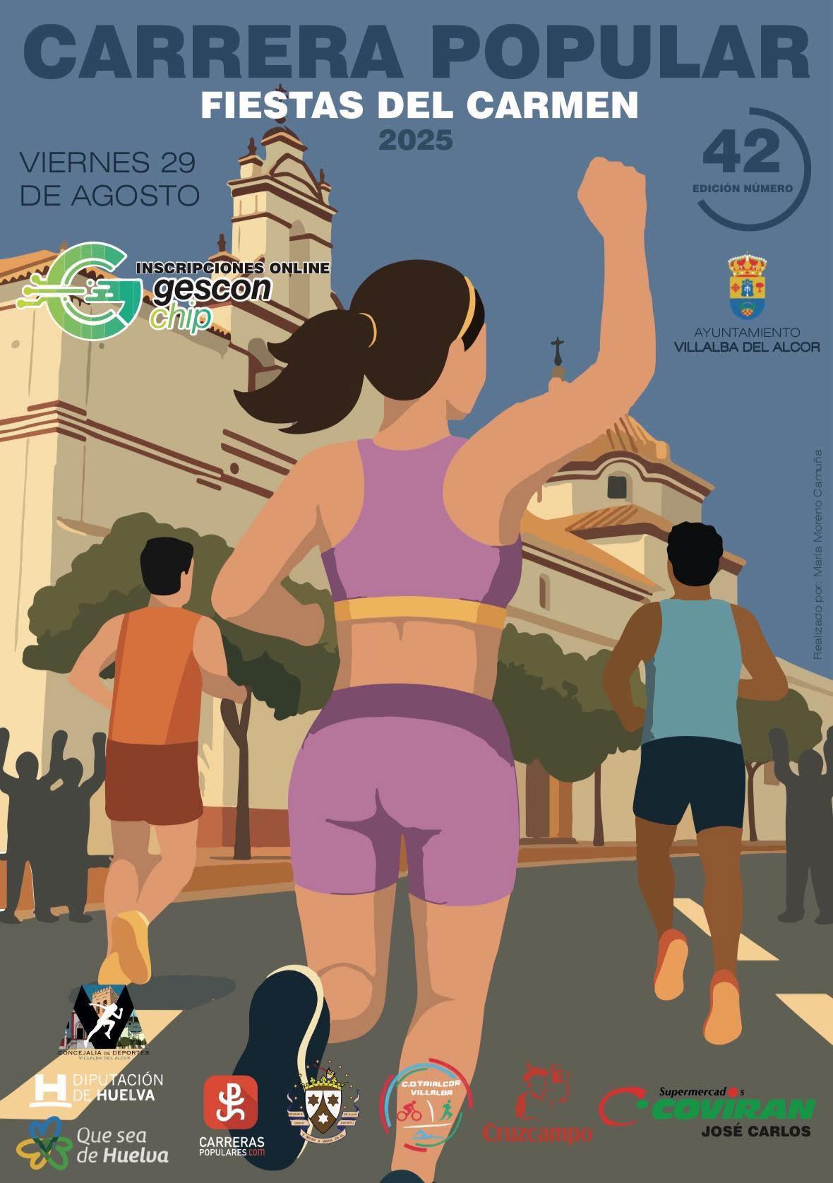 El Ayuntamiento de Villalba del Alcor tiene como uno de sus proyectos anuales en el área de deportes, el desarrollo de la XLII Carrera Popular Fiestas del Carmen que tendrá lugar el viernes 29 de agosto de 2025, enmarcada dentro de las tradicionales fiestas del Carmen de la localidad.