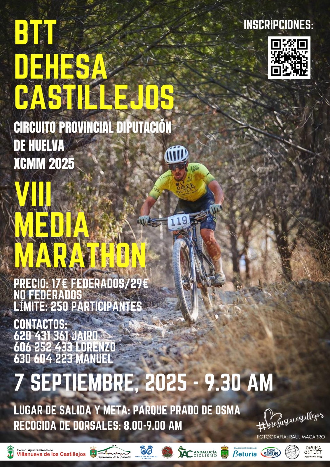 El Ayuntamiento de Villanueva de los Castillejos organiza la VIII MARATHON BTT DEHESA DE CASTILLEJOS, tendrá lugar el día 7 de septiembre a partir de las 9:30 horas.