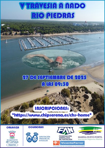 La V Travesía a Nado del Río Piedras (Cartaya) está organizada por el Servicio Municipal de Deportes del Ayuntamiento de Cartaya, con la colaboración de la Asociación Deportiva Náutica Marina Nuevo Portil, de la Excma. Diputación Provincial de Huelva y de la Federación Andaluza de Natación. Es una prueba puntuable para el Circuito de la diputación provincial de Aguas abiertas de Huelva.