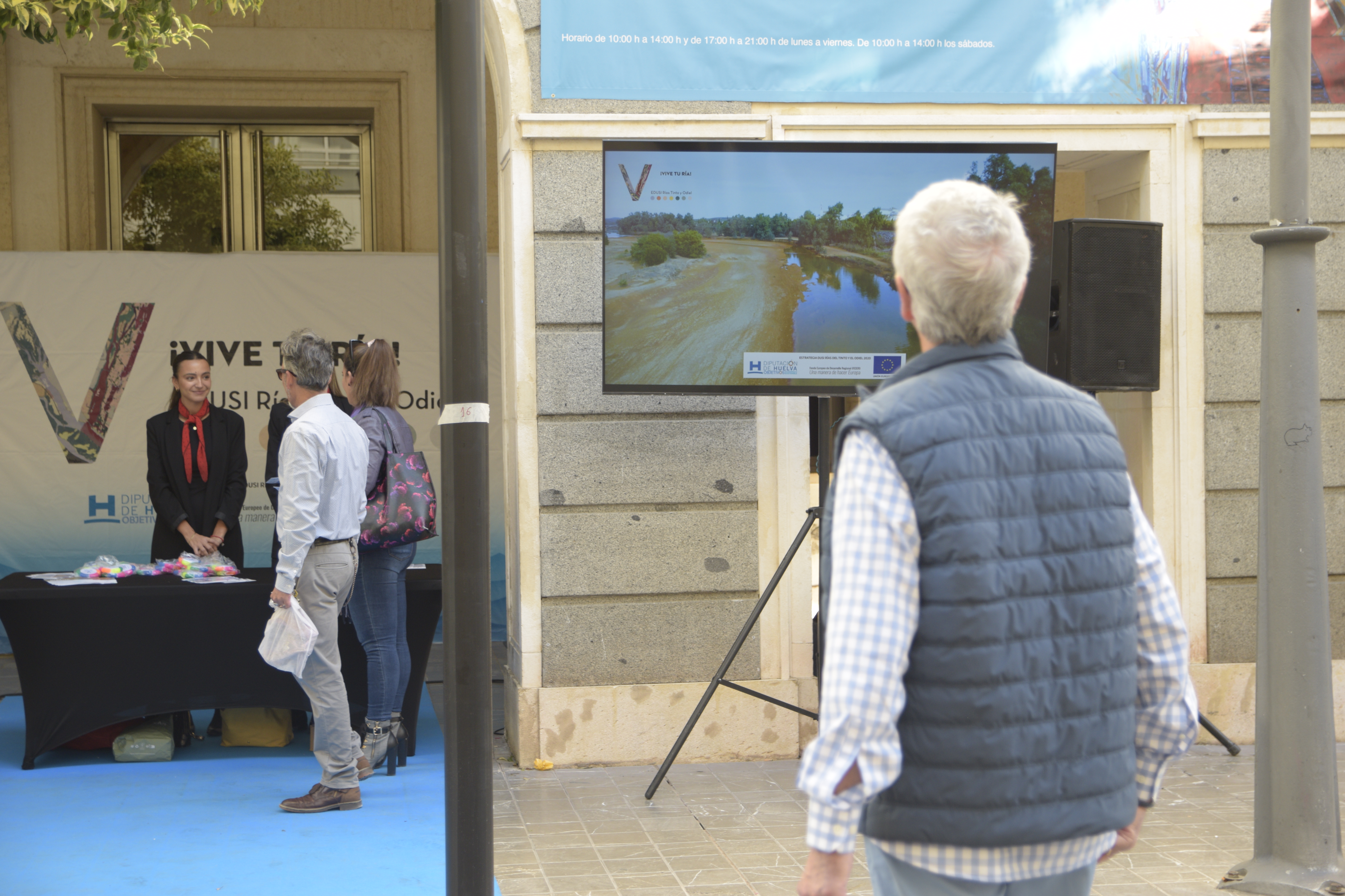 Coincidiendo con la celebración de la 49 edición del Festival de Huelva de Cine Iberoamericano, los soportales de la Diputación de Huelva en la Gran Vía de la capital han acogido este miércoles la acción ‘Rías de cine’. La iniciativa ha permitido difundir los valores ambientales, culturales y turísticos de los municipios integrados en la Estrategia de Desarrollo Urbano Sostenible e Integrado (EDUSI) Vive tu Ría- Rías de Huelva 2020 (Rías del Tinto y Odiel), gestionada por la institución provincial y cofinanciada al 80% por el Fondo Europeo de Desarrollo Regional (FEDER).